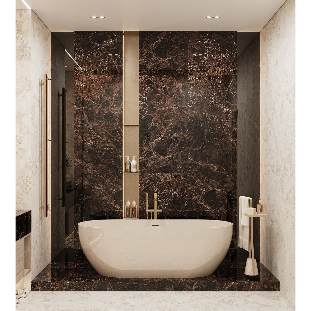 VATICAN EMPERADOR — это роскошный керамогранит с изысканным рисунком, имитирующим благородный мрамор, который придаёт любому интерьеру неповторимую атмосферу и элегантность. Каждый квадратный метр этого удивительного материала словно рассказывает свою собственную историю благодаря многогранности оттенков, которые идеально сочетаются между собой. Глубокий чёрный цвет гармонично переплетается с контрастными золотистыми линиями, создавая эффект натурального камня, что делает его настоящим акцентом в интерьере.